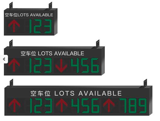 LED 模组支持红色箭头和绿色数字双色显示,剩余车位数显示